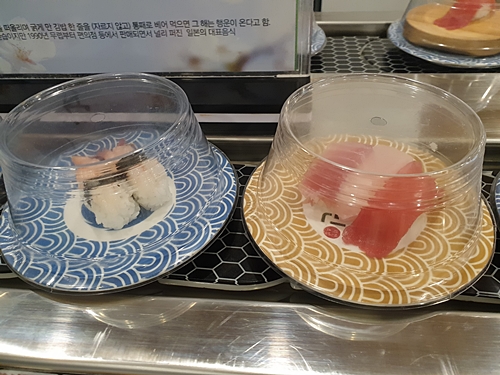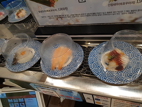초밥 레일에 새로운 초밥들이 계속 올라오고