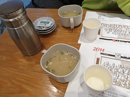 앉자마자 물이랑 된장국 내어주시고요.