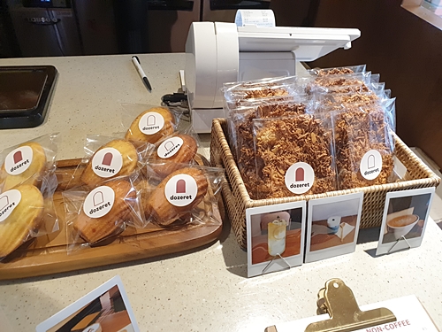 카운터에서 마들렌, 쿠키같은 간단한 디저트류를 팔고 있고